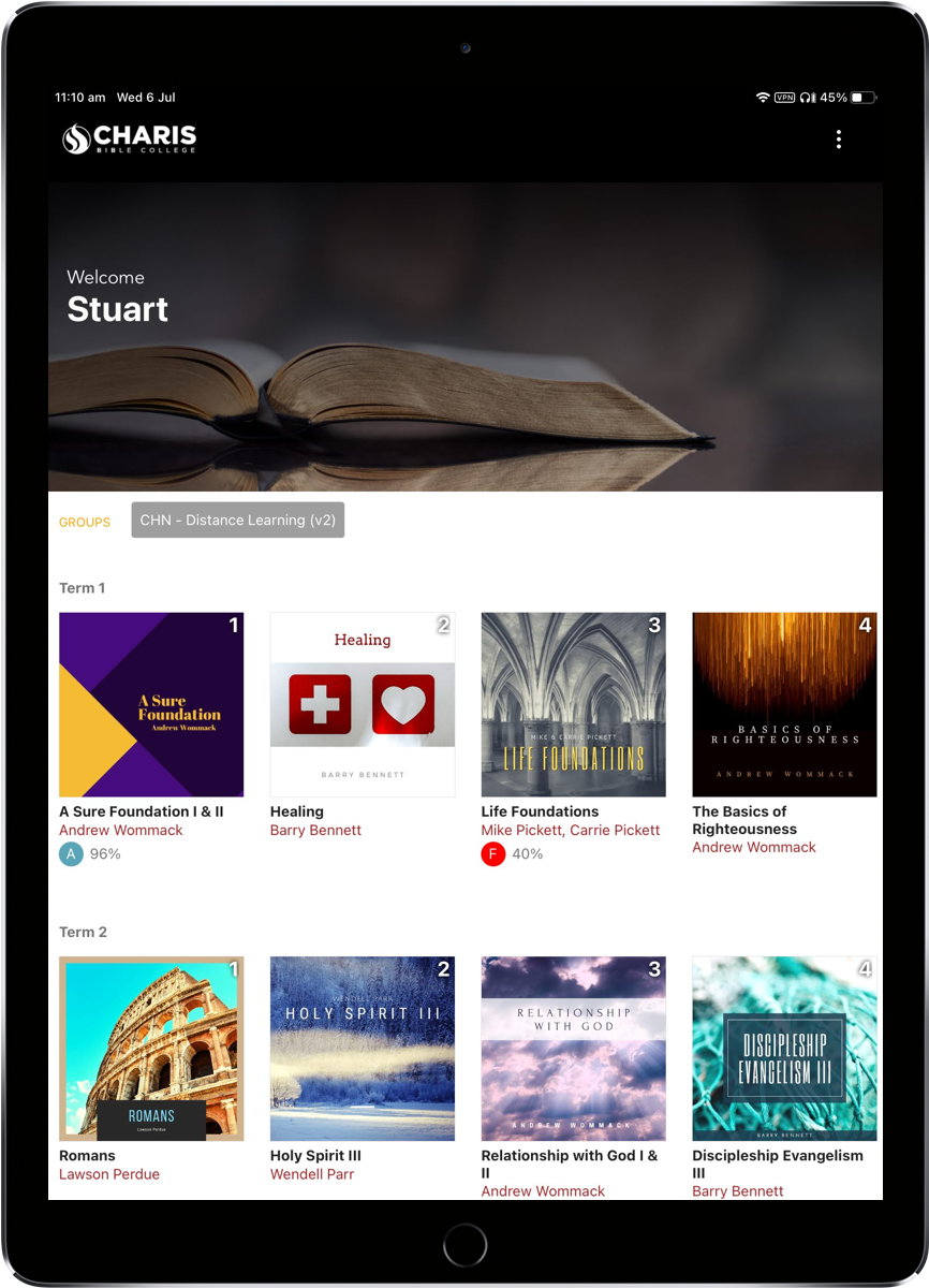 eCHARIS is the entire first year of Charis Bible College pre-loaded onto a new iPad that is yours to keep. eCHARIS is completely self-paced and you can watch all the courses and take the tests on the device without having to be connected to the internet.