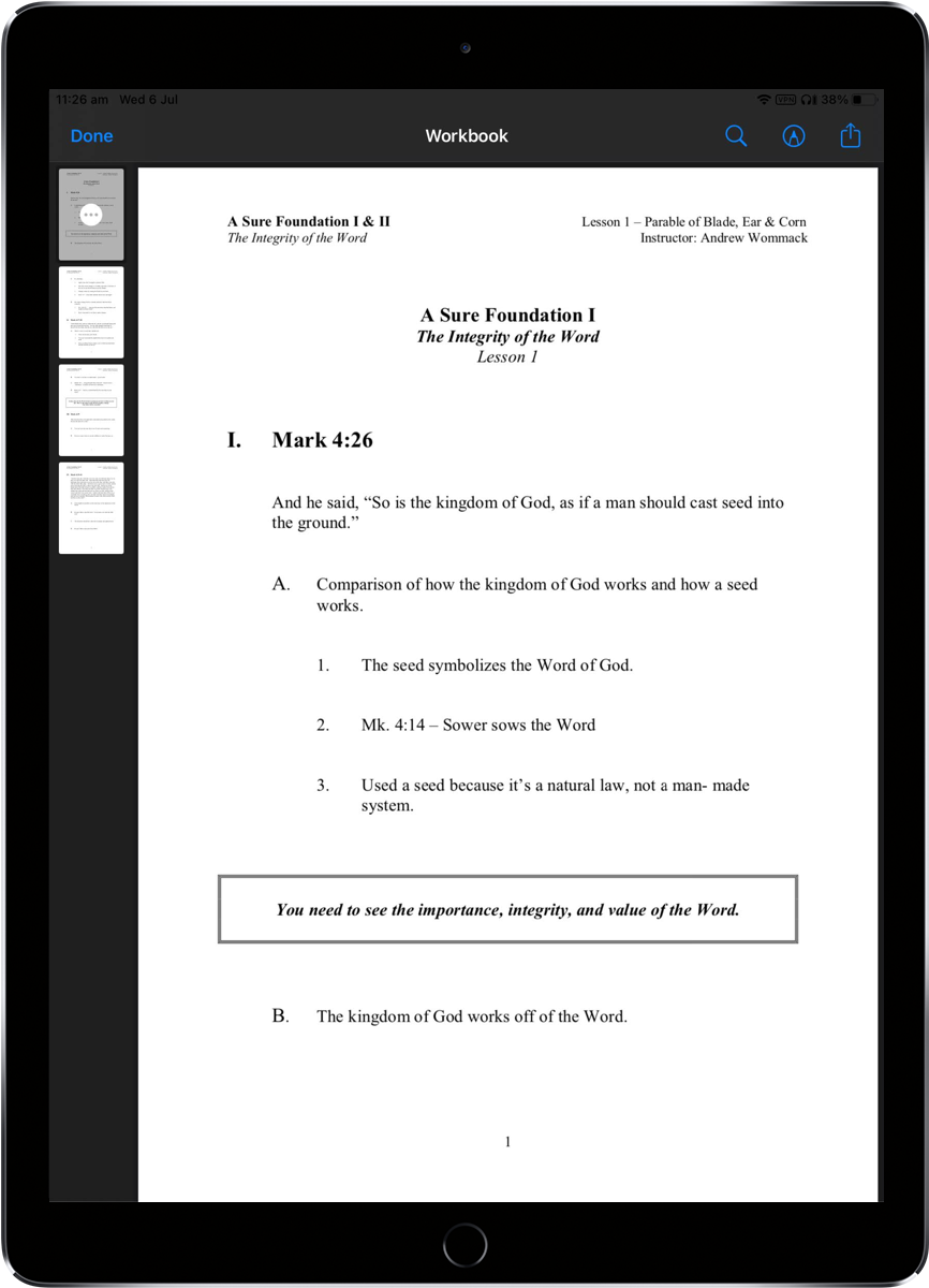 Get the Course Guides, lessons transcripts, and other documents on your iPad. Print them out if you prefer.